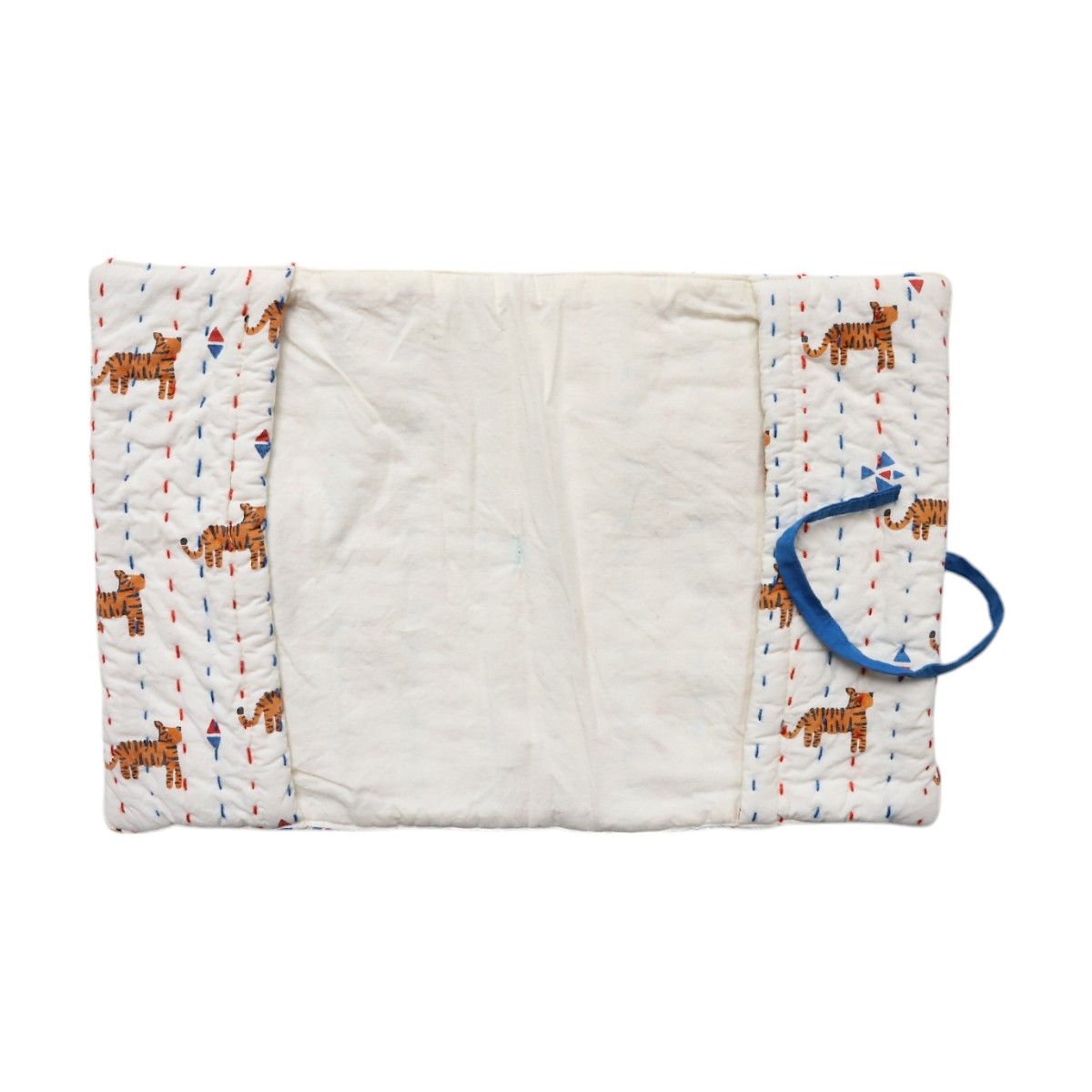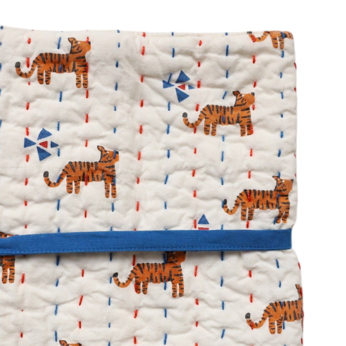Les effets tissés et matelassé avec les tigres de ce joli tissu pourront s'associer à la collection Tigre du Bengale. Et la fermeture avec le lacet à nouer est jolie et pratique. A l'intérieur, il est composé de deux rabats épais pour y glisser le carnet et les papiers importants.