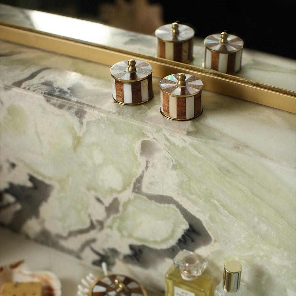 Veuillez noter que cette boîte est partiellement fabriquée en vrai coquillage, ce qui entraîne des différences de couleur naturelles, des taches et des lignes de fracture. Ces variations ne sont pas considérées comme des défauts mais plutôt comme des caractéristiques distinctives du processus artisanal.