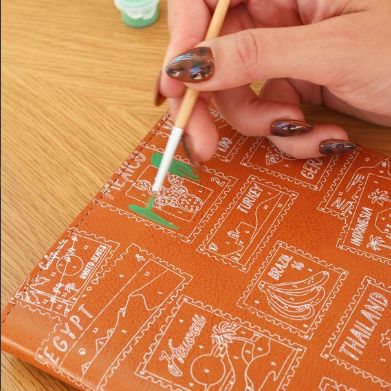 Chaque trait, chaque nuance évoque un souvenir de soleil, d’eau turquoise ou de ruelles pittoresques. Une fois la couverture peinte, le carnet devient un bel objet de papeterie à garder pour soi ou à offrir, empreint de liberté et d’énergie.