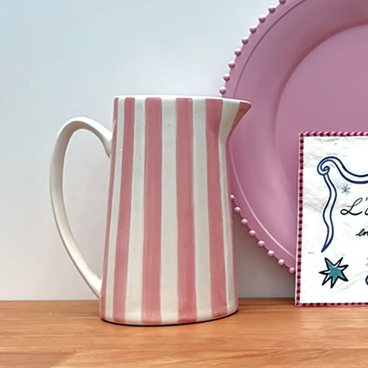 Avec son look délicieusement vintage et ses rayures pleines de pep's, ce met tout le monde d’accord. Que ce soit pour servir une citronnade maison, un thé glacé bien frais ou improviser un joli vase pour vos fleurs fraîches, il assure sur tous les fronts.